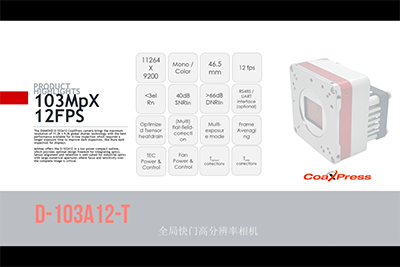 為應(yīng)對機器視覺行業(yè)對高分辨率相機的需求,荷蘭高性能工業(yè)相機制造商Adimec公司推出了1.03億像素12幀的全局快門高分辨率工業(yè)相機D-103A12。相比其他相機關(guān)注分辨率的提高,Adimec D-103A12相機除了分辨率方面,更關(guān)注在相機圖像質(zhì)量、針對特定應(yīng)用的優(yōu)化以及采集效率方面的提升。