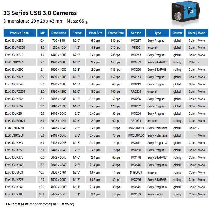 The Imaging Source 33系列提供 Sony 及 onsemi 最廣 泛的全局與卷簾快門CMOS傳感器選擇。 分辨率范圍自0.4 MP至20 MP (幀速率高達(dá)539 fps - 使用 ROI時(shí)更高),此功能齊全的相機(jī)系列為幾乎所有機(jī)器視 覺(jué)應(yīng)用提供了價(jià)值驅(qū)動(dòng)的成像解決方案。 此系列面陣掃描工業(yè)相機(jī)亦提供 GigE 接口,以輕盈精巧 的外形提供高性能成像。